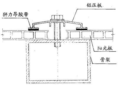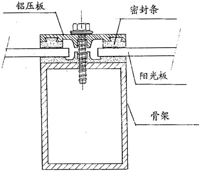 The assembly system is mainly used in small facilities such as garage, station awning, rain canopy, greenhouse, and many other glass substitutes. When the wet assembly method is used, as shown in Figure 2, the basic requirement is that the sealing system shall be able to withstand a certain amount of movement of the plate and allow thermal expansion without reducing its bond with the frame and plate. The General Assembly recommended the use of wet neutral silicone sealant and hollow sunshine board, but should pay special attention to in the use of chemical sealant must check with absolutely can not use alkaline and acid curing agent of silicone rubber, because these will lead to plate cracking, especially when the internal stress, in the selection of sealant, in addition to considering the chemical adaptability, but also the focus of inspection, elongation and weather resistance.